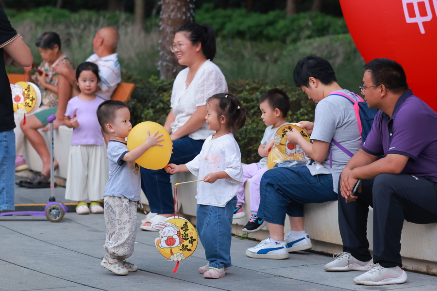 昨晚,活动开始才半小时左右,为营造氛围而准备的几箱腕带式星星灯已经被排队的市民领完,大家把温馨的黄色星星灯戴在手腕上,在夜空中挥舞手臂,便是一道道美丽的光影,汇成了一场迷你的社区光影秀,传递出“家园共此时,邻里同欢庆”的温暖与喜悦。