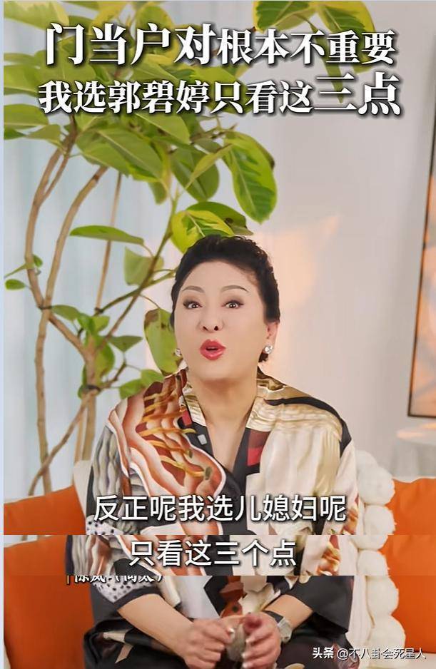 向太条理清晰的讲述了自己挑选儿媳的原则,不看重所谓门当户对是她的原则,挑中郭碧婷也是出于三点。