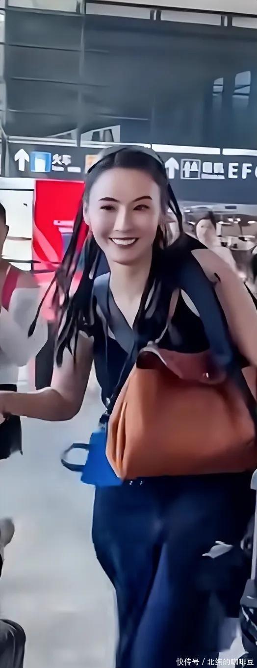 这一场,来的除了这两位外,还有一位港星,就是张柏芝,45岁的她,大包小包全部背在身上,手里还推着两个行李,一个人拿这么多东西一点也不狼狈,估计平时没少抱孩子,锻炼出来的肌肉线条很明显。