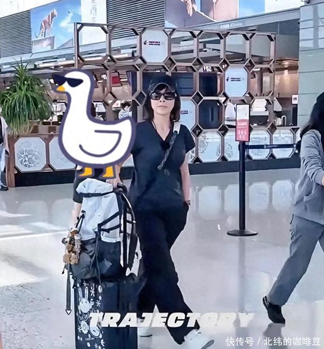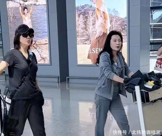 和大三岁的何赛飞同行,港星的精神面貌果然与众不同,她肩背挺拔,一手插兜,一手推行李,轻轻松松,光看走路姿态,刘嘉玲看上去就三十多岁,很年轻态!